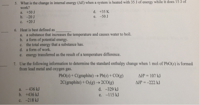 Solved What Is The Change In Internal Energy Delta E When Chegg Com